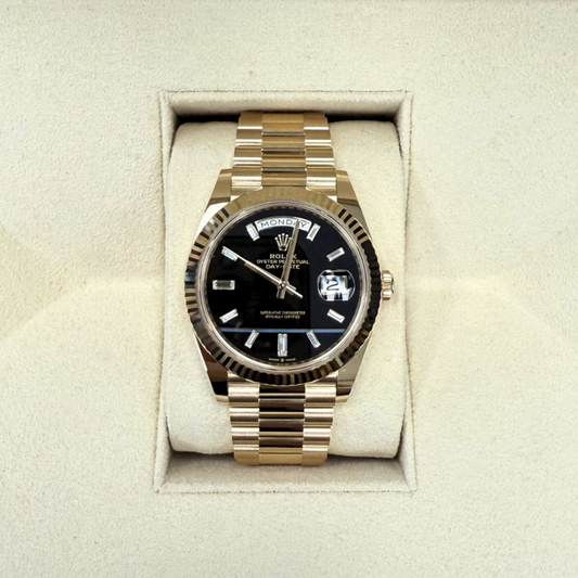 Day-Date 40 Onyx with 10 Baguettes, Yellow gold, 228238A