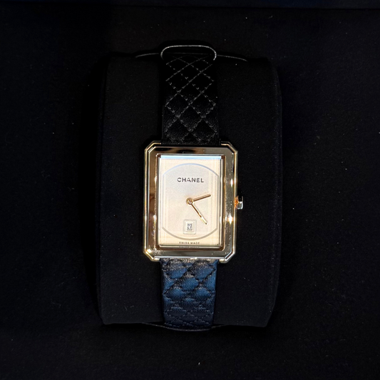 The Boy-Friend Watch, Medium, Beige Gold, Quilted pattern calfskin strap, H6588