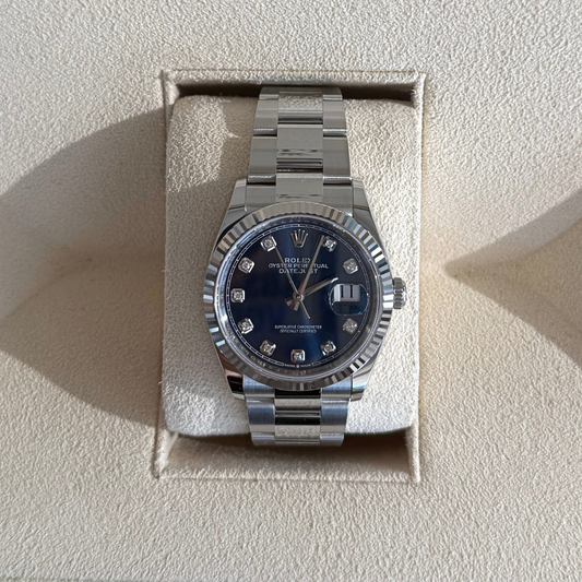Datejust 36 Blue Oyster with Diamonds, Oystersteel and White gold, 126234G